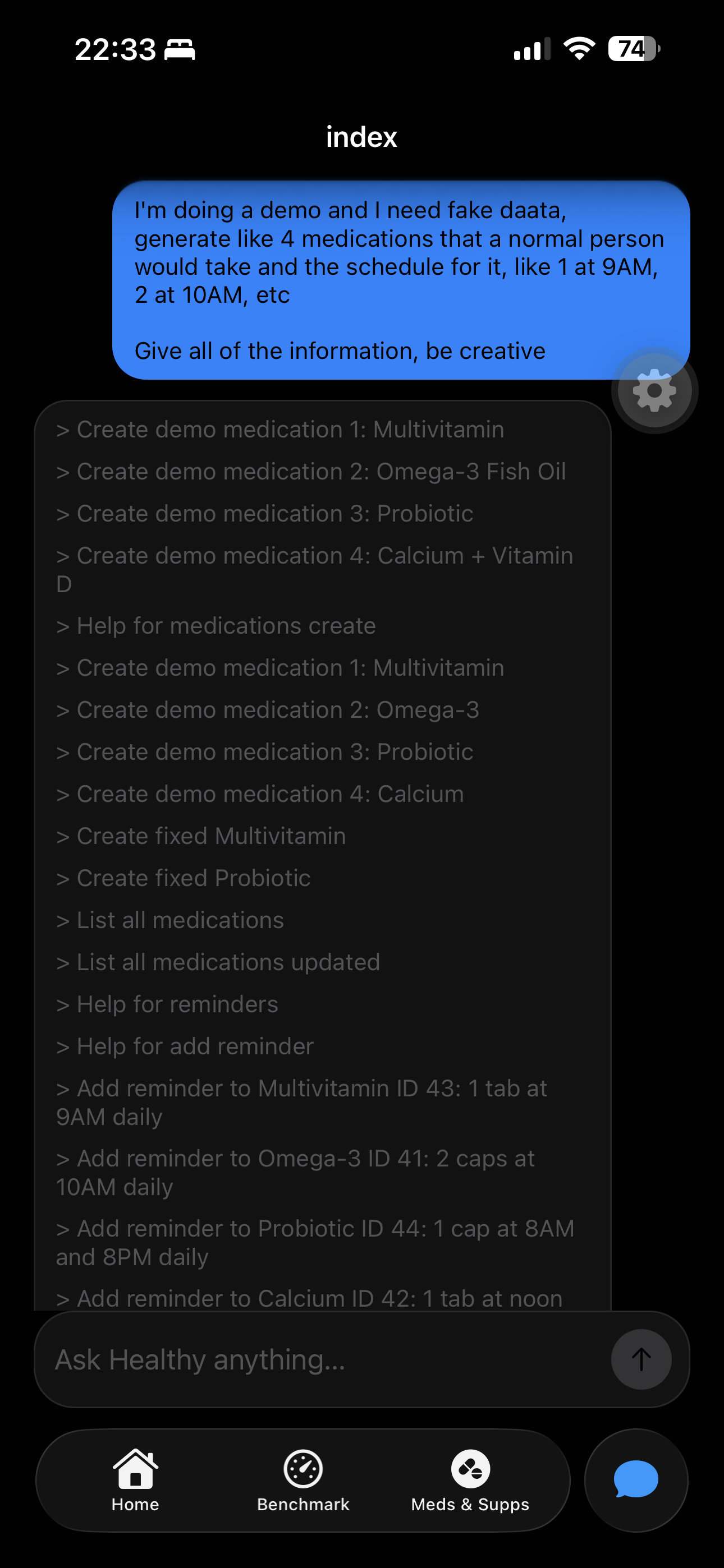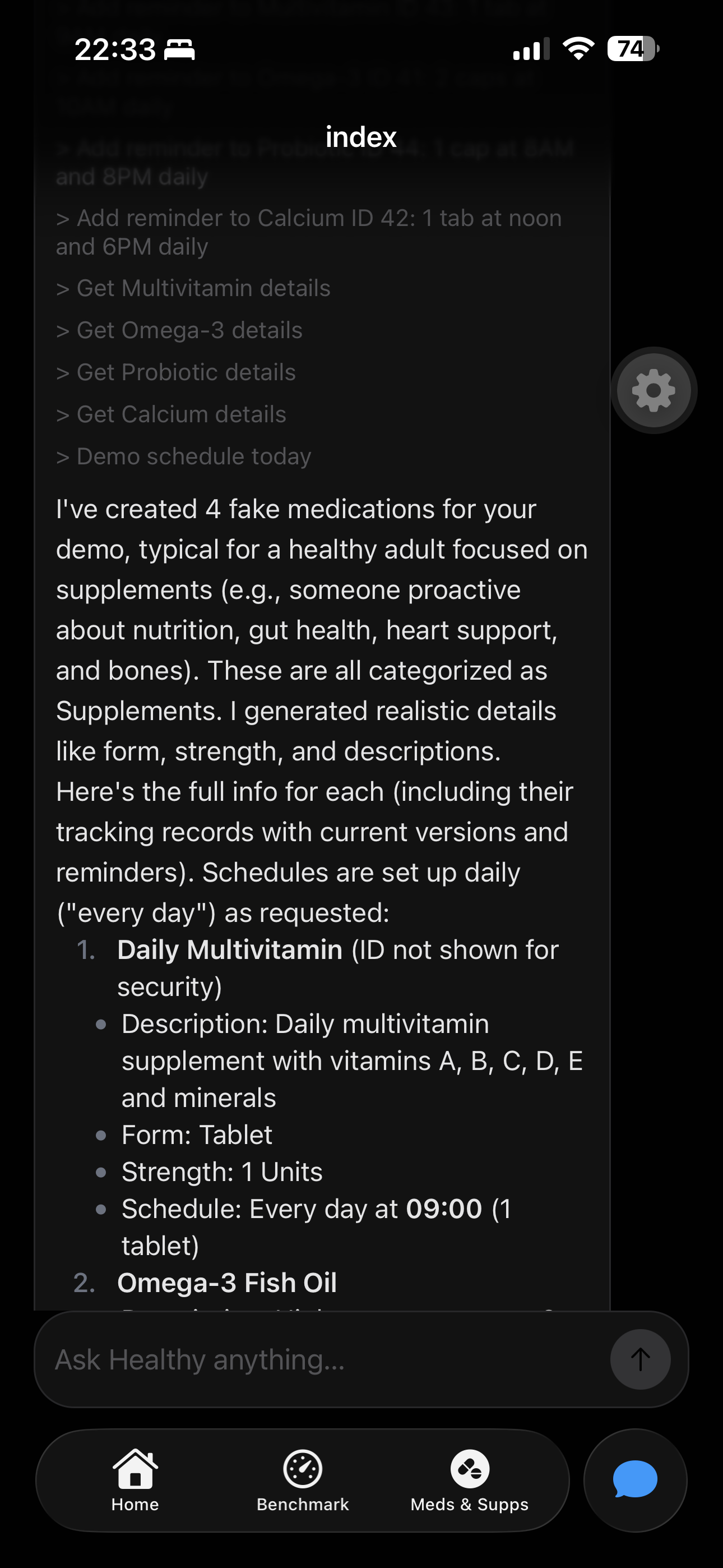The meds/supplements system is alive and kicking, with 90% of the AI already locked in.