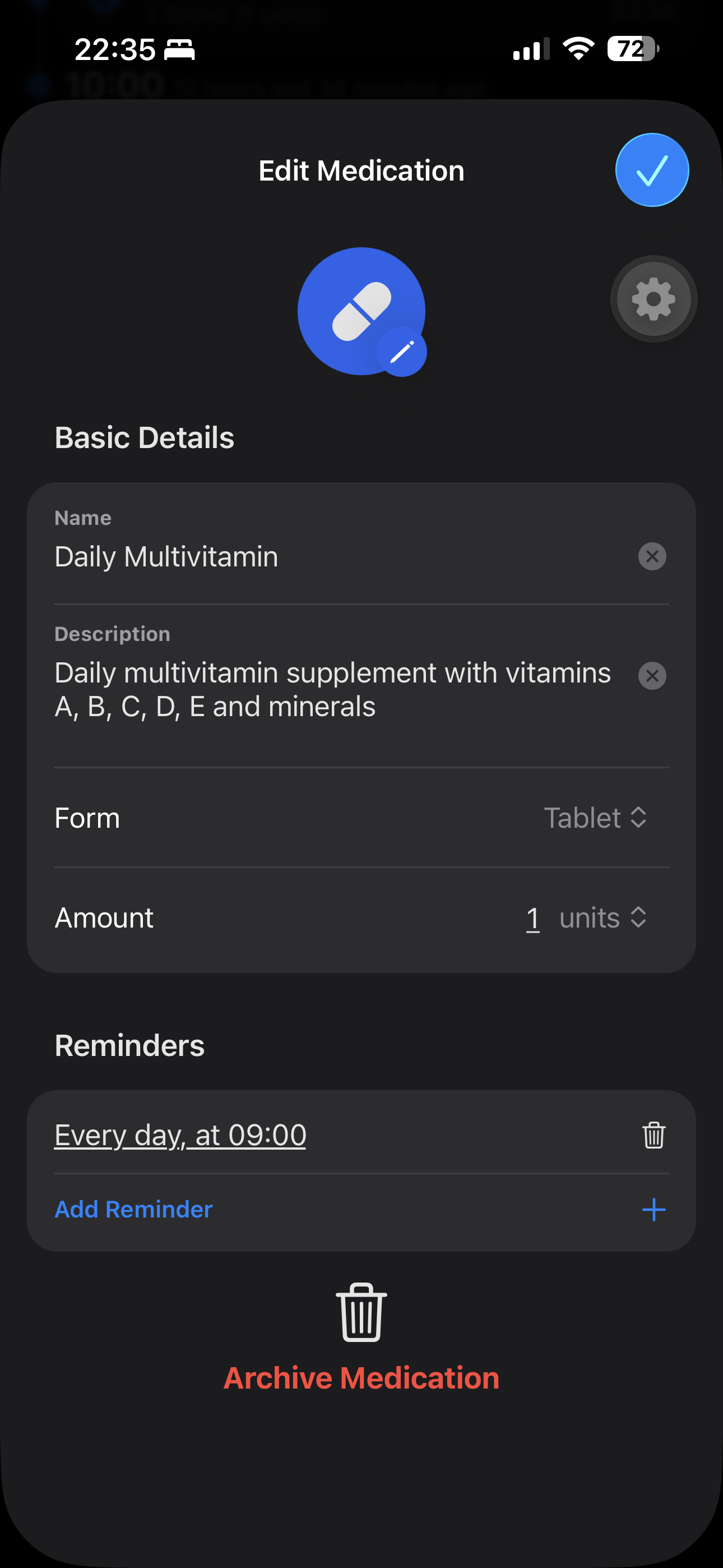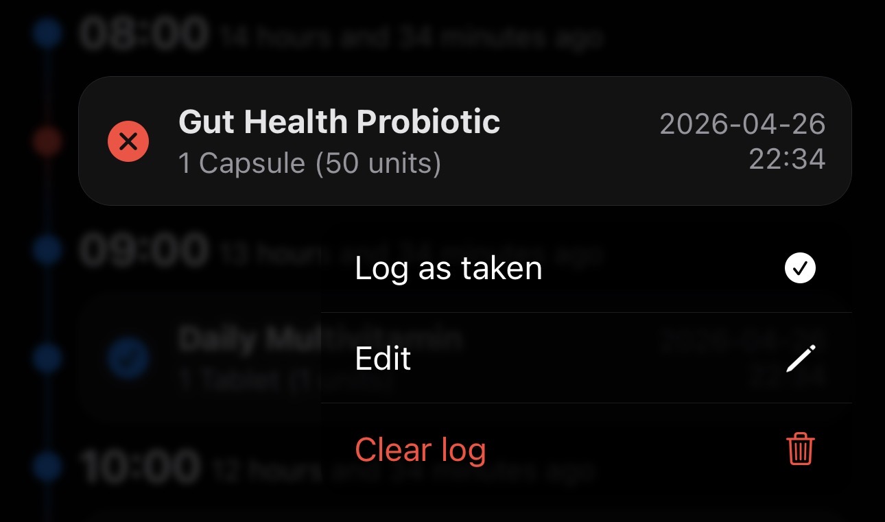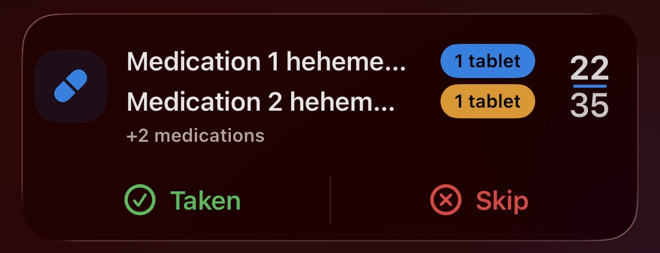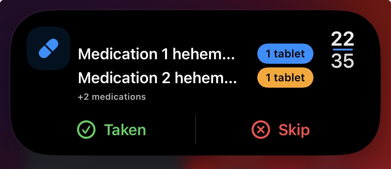 You take it every day at 9AM, but are you really going to open the app every day just to log it? Modern iPhones have Live Activities, let's use that!!