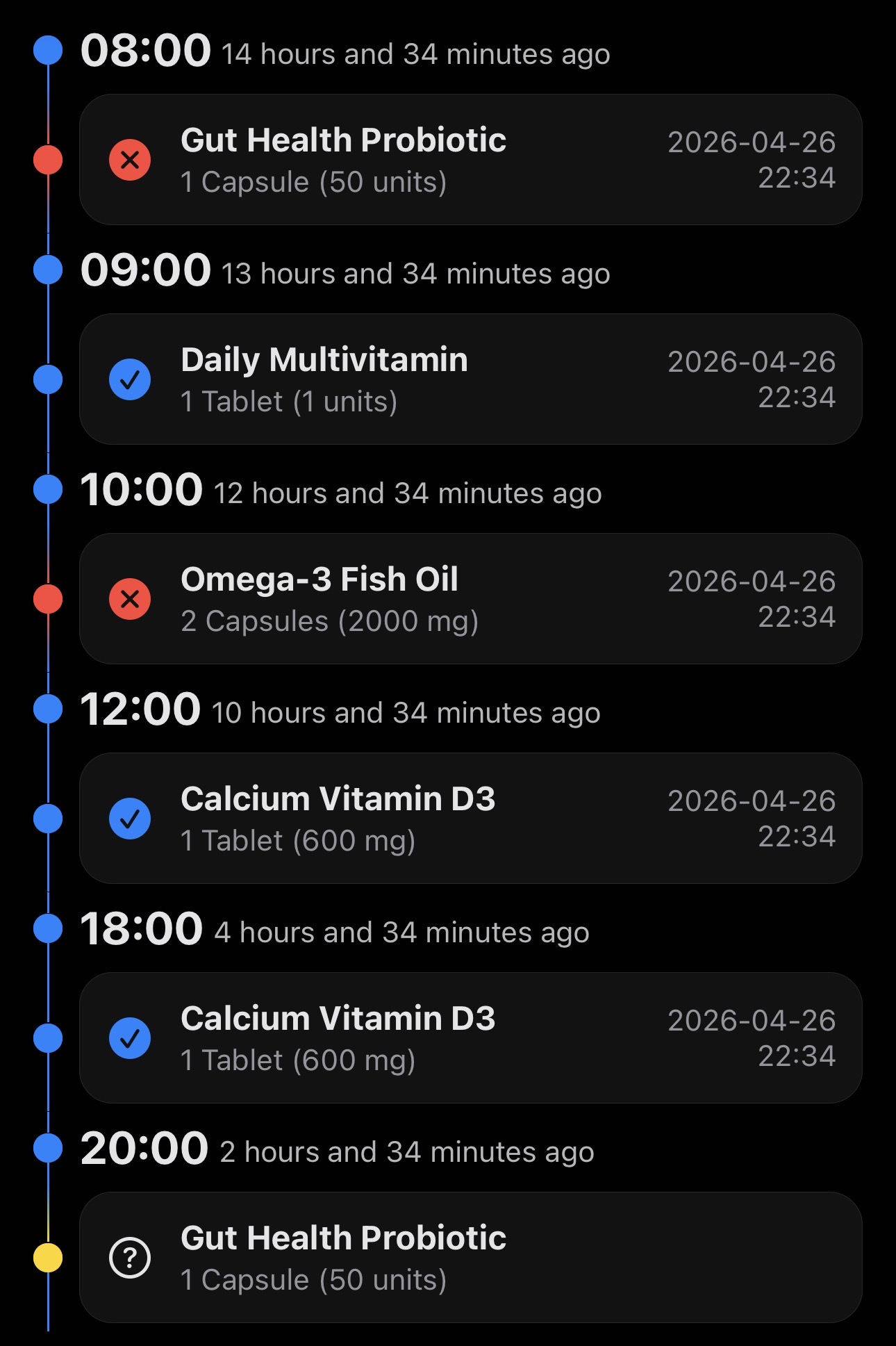 - Mark whether you actually took it or completely forgot like a normal human.